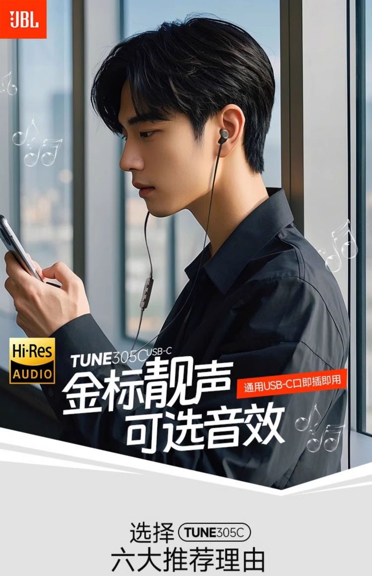 T305C有线耳机半入耳式TYPE-C接口通用音乐游戏耳机