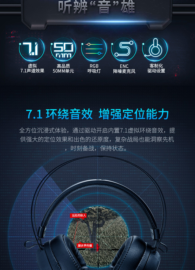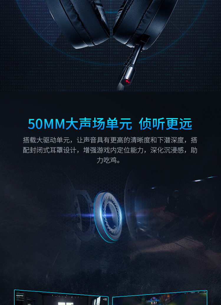 VH500虚拟7.1声道USB有线电脑游戏背光头戴式耳机耳麦