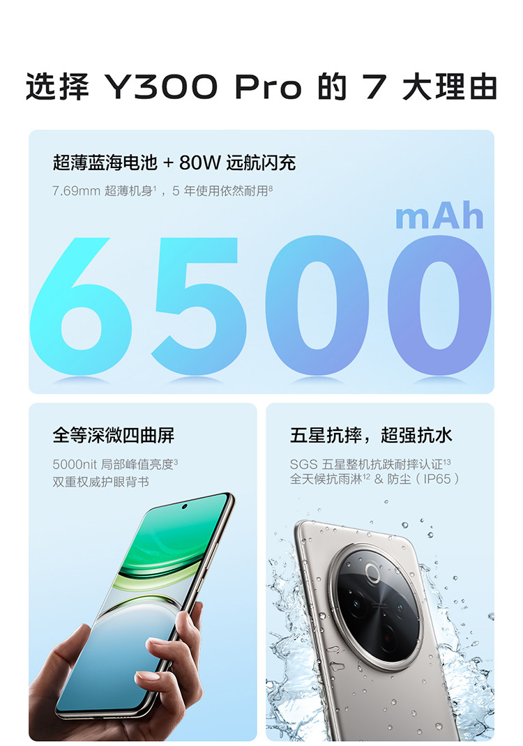 Y300 Pro 6500mAh第一代骁龙6手机2024新款